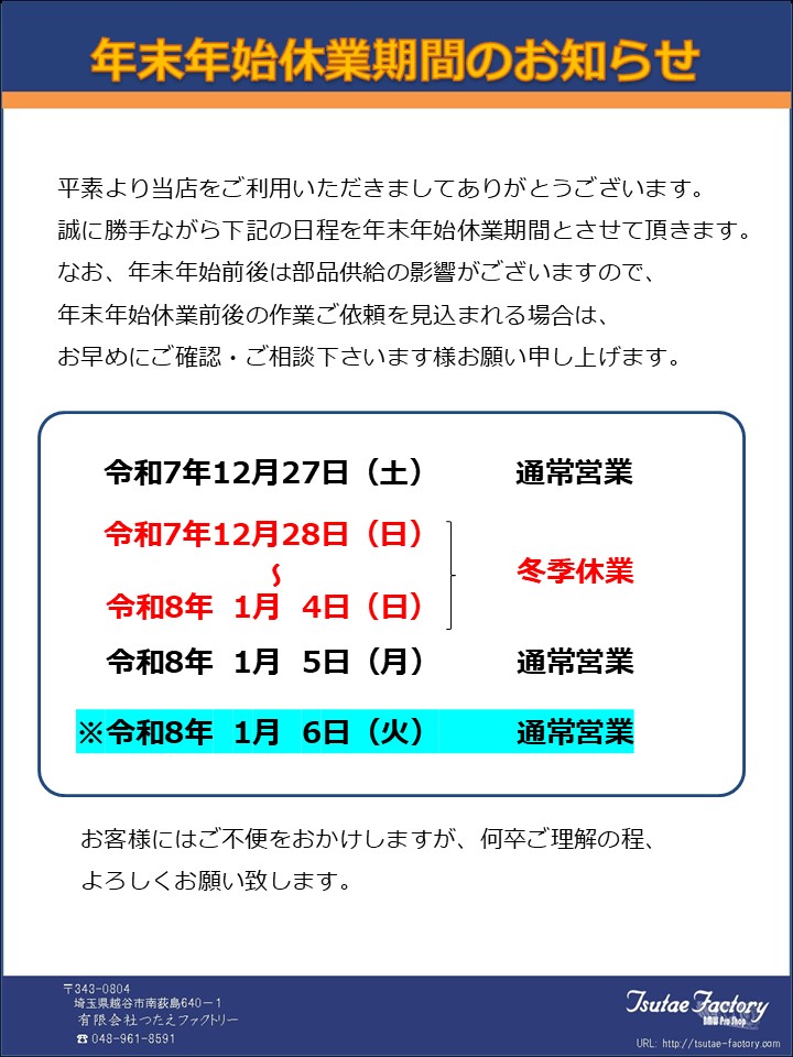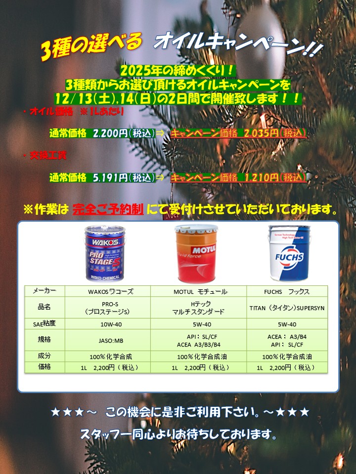 場合にはご案内させて頂きますが、ご心配がございましたら同時に車両点検もご検討下さいませ。