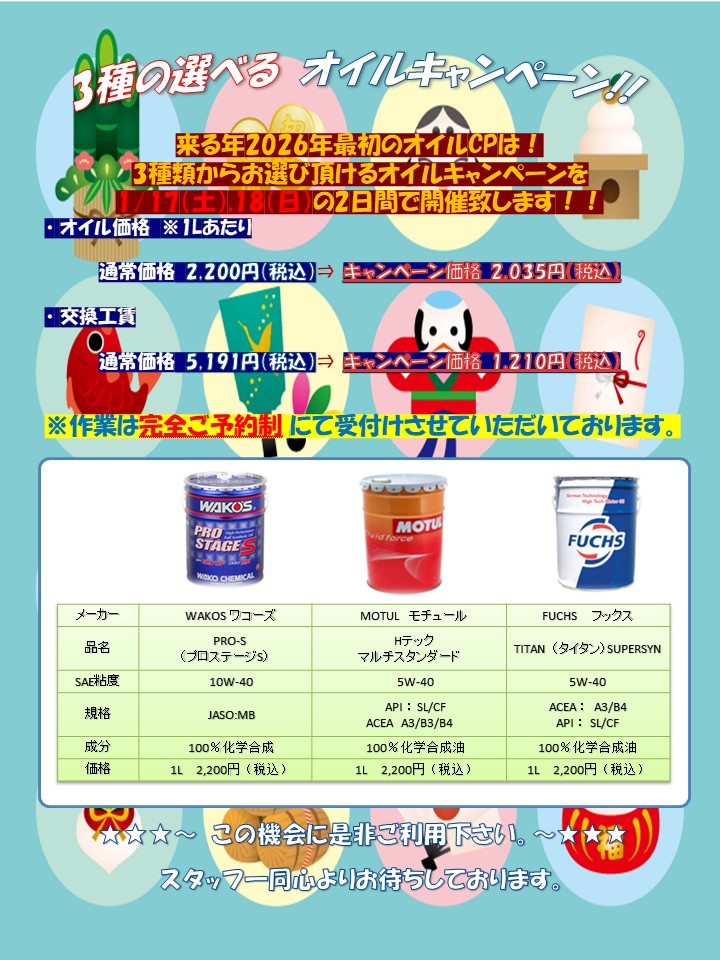 場合にはご案内させて頂きますが、ご心配がございましたら同時に車両点検もご検討下さいませ。