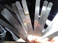 この測定作業、ちょっとした足し算をしながら測定します、っていうのも0,01mm単位でクリアランスを実測するので厚みの異なるシックネスゲージを組み合わせて測るんです。例えば0,32mmの隙間を測定するには0,20と0,12のゲージを組み合わせて挿入します(写真15) |